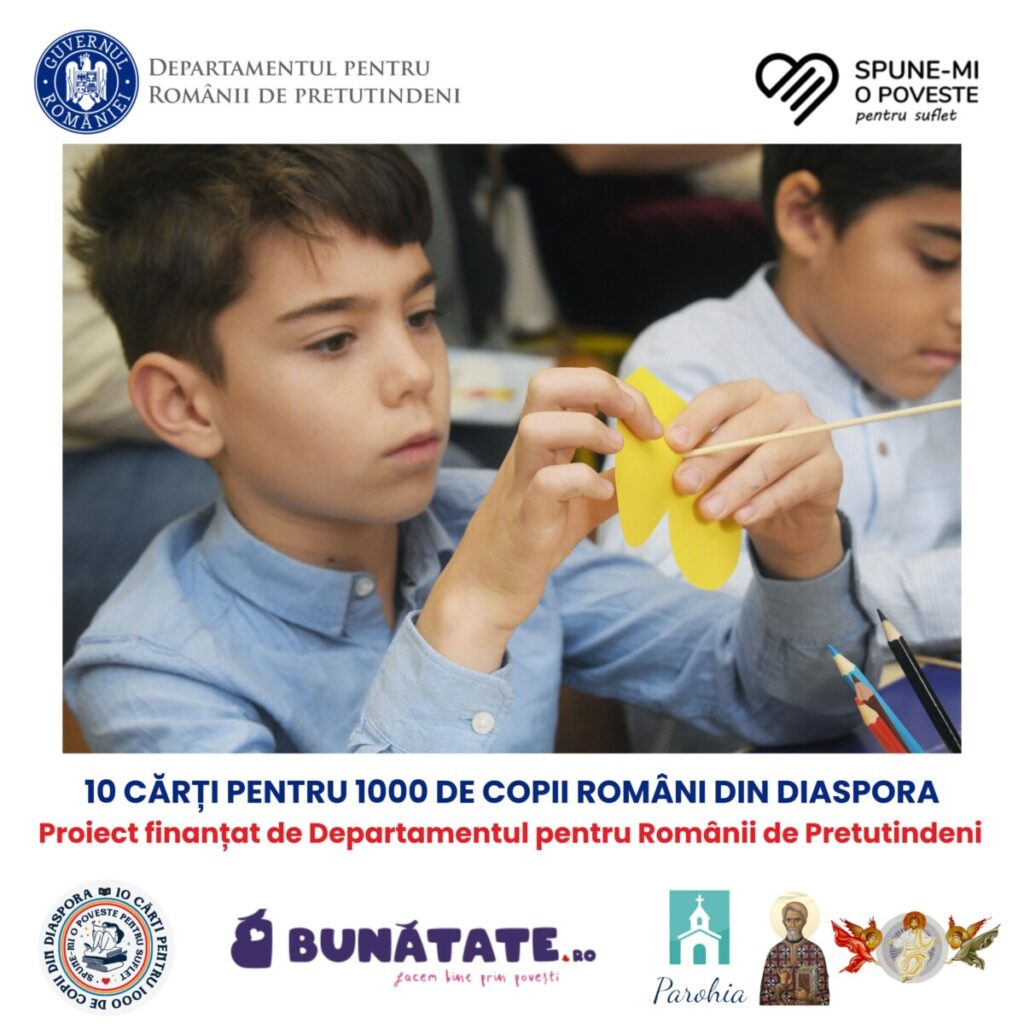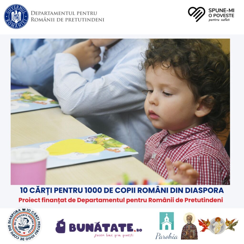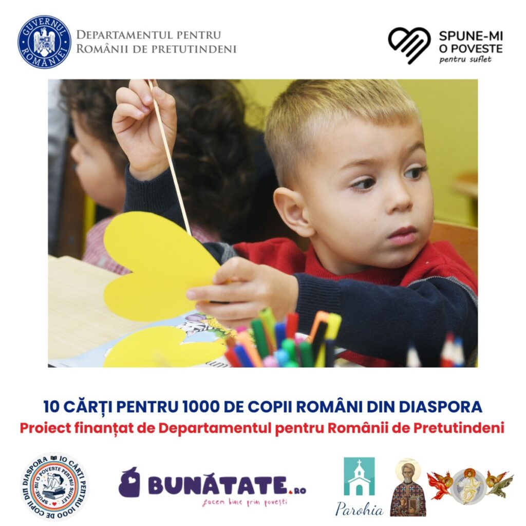 Proiectul #10_cărți_pentru_1000_de_copii_români_din_diaspora este inițiat de Asociația „Spune-mi o poveste pentru suflet” și finanțat de Departamentul pentru Românii de Pretutindeni.