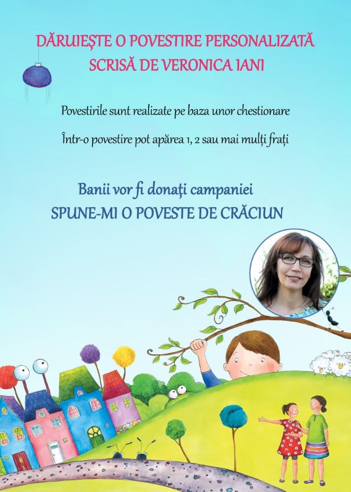 Ofer 3 povestiri personalizate, în schimbul unor donații de minimum 500 de lei, în campania „Spune-mi o poveste de Crăciun”. Cu o donație de 500 de lei se vor achiziționa 30 de cărți.