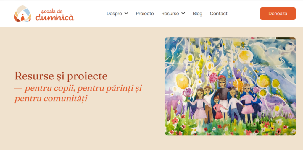 - Dezvoltăm resurse educaționale care transmit valori creștine prin povești. Pe aceste le găsiți pe un nou site: www.scoaladeduminica.ro. Până nu demult, ele erau chiar aici, pe canalul oficial de comunicare al asociației. De joi, au o nouă „casă”: www.scoaladeduminica.ro . Intră pe www.scoaladeduminica.ro, răsfoiește și (re)citește texte, descoperă idei de activități, iar dacă acest proiect ți se pare util, te invit să îl susții. Sau să susții oricare dintre proiectele asociației.
