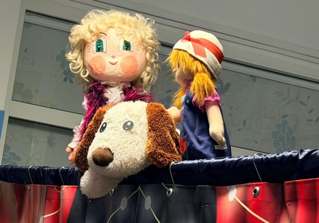 Prietenii noștri bibliotecari au jucat în fața copiilor internați aici piesa „Căţelușul bibliotecar”.